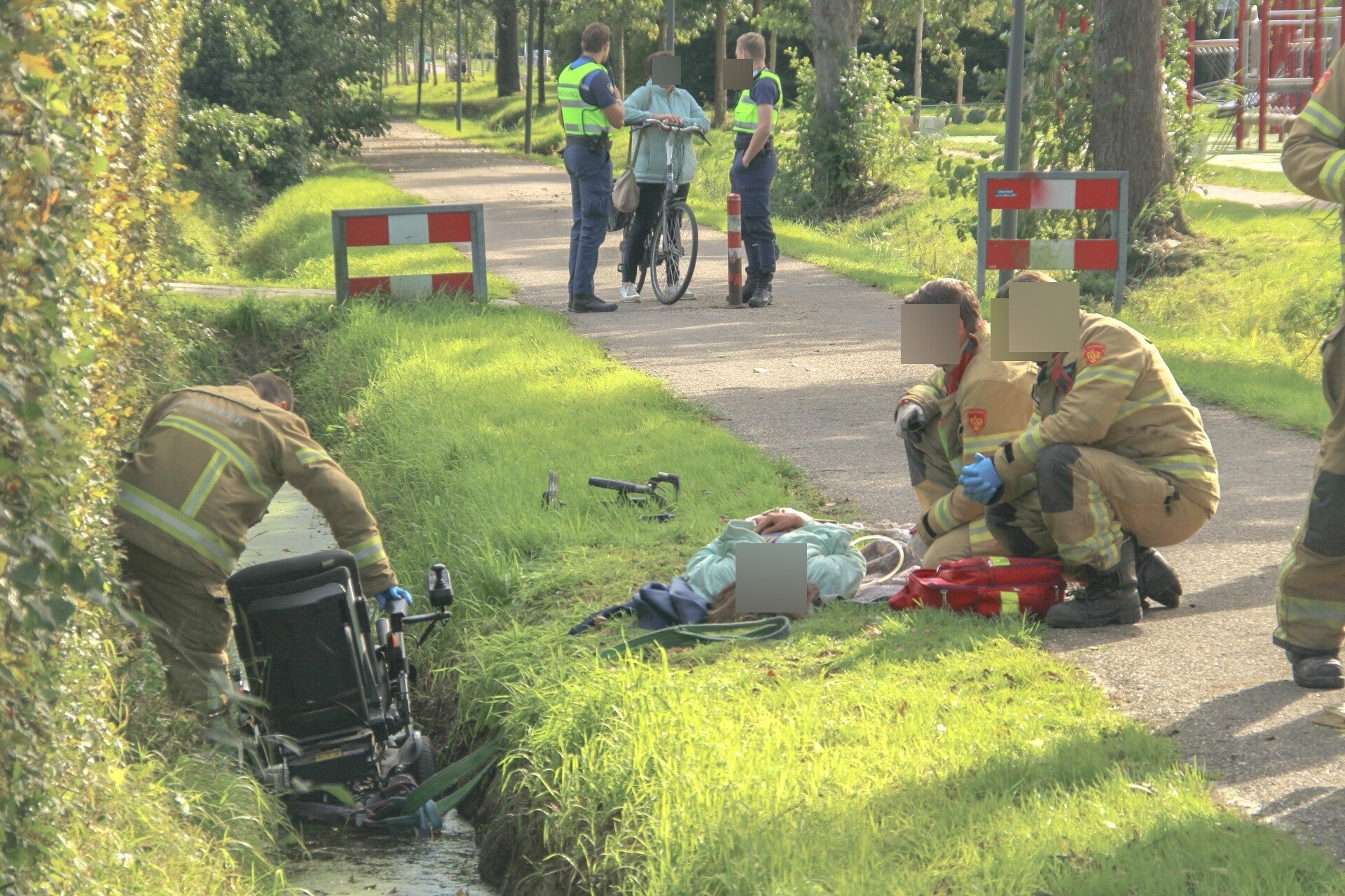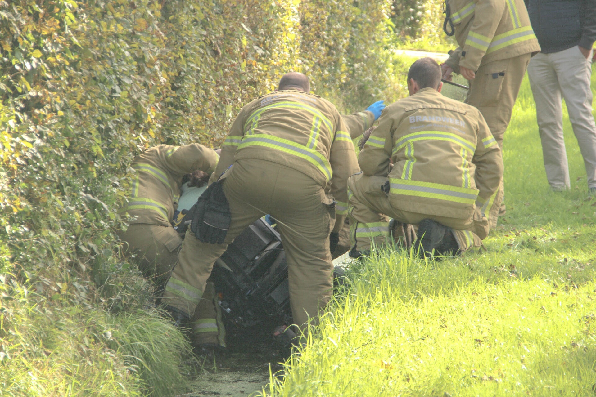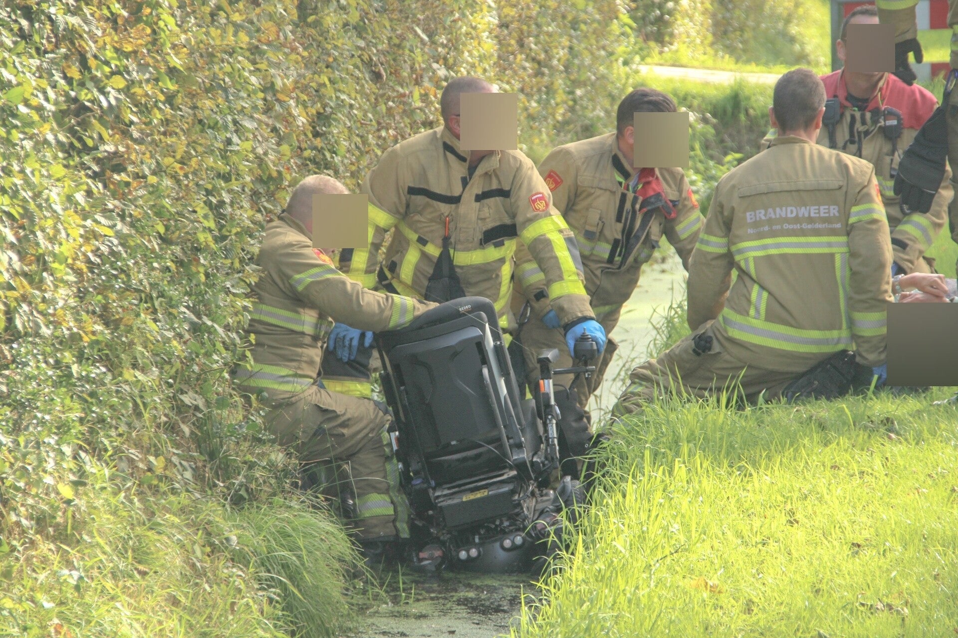 De scootmobiel is met behulp van een lier door de brandweer uit de sloot getrokken.