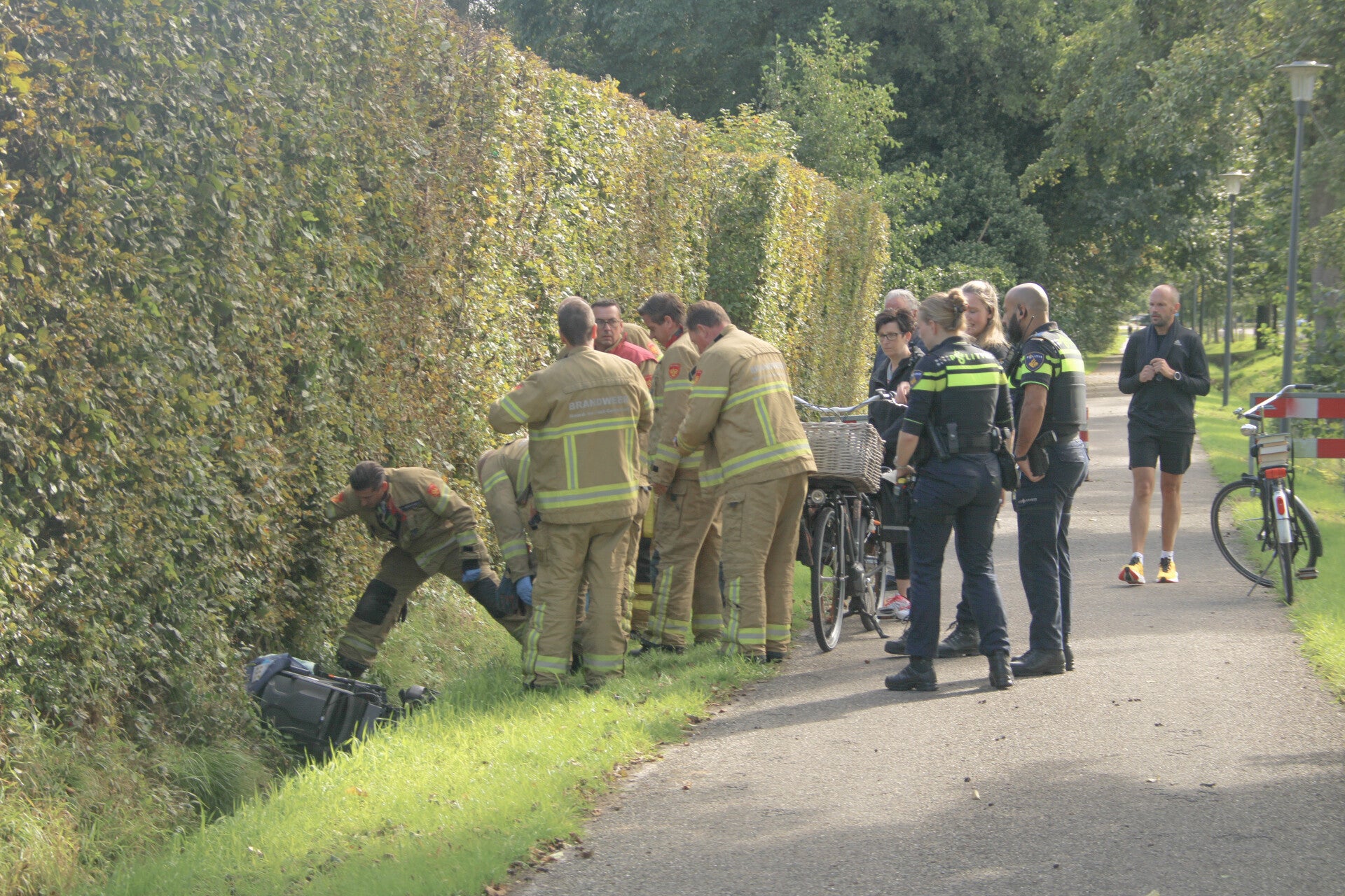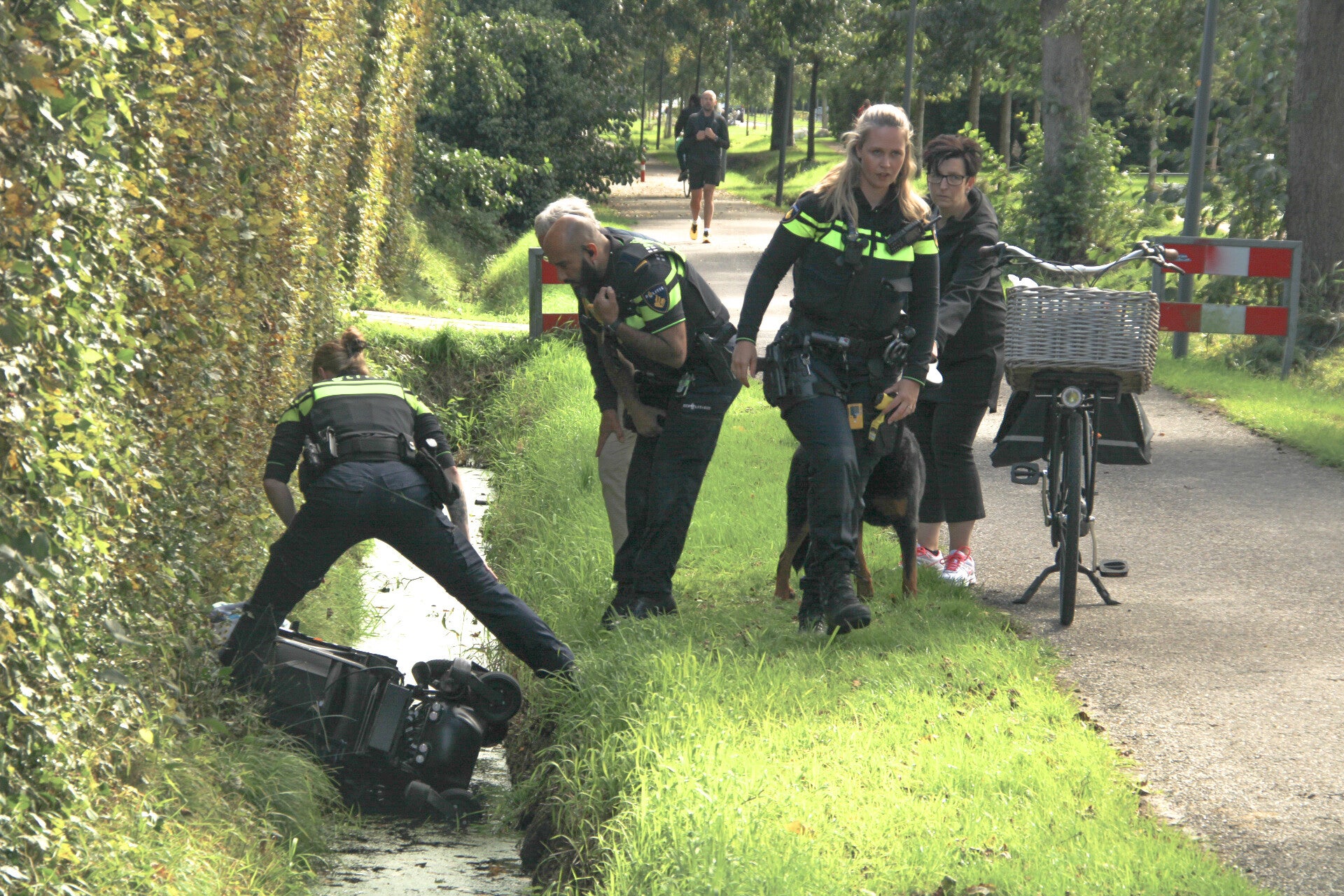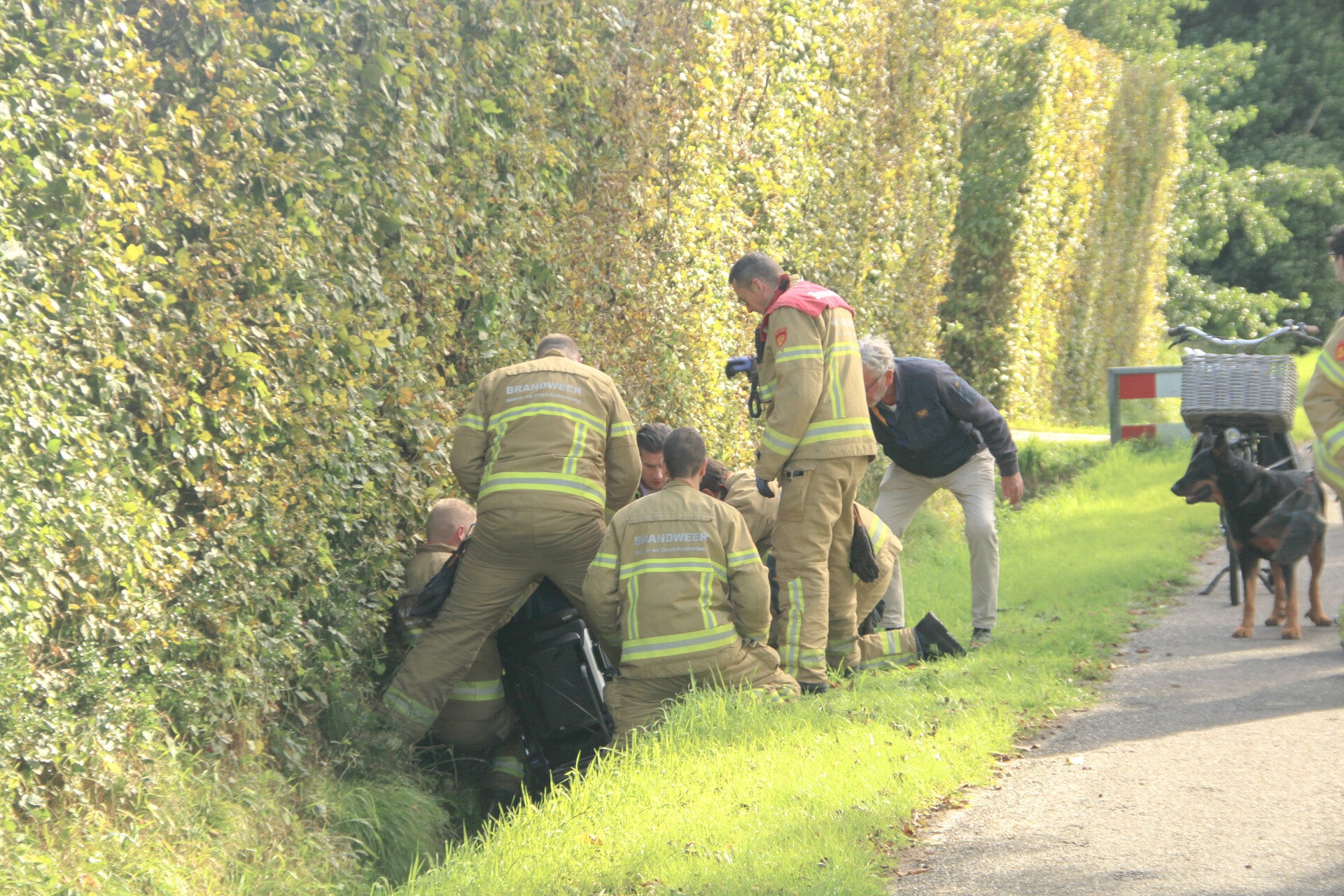 De scootmobiel is met behulp van een lier door de brandweer uit de sloot getrokken.