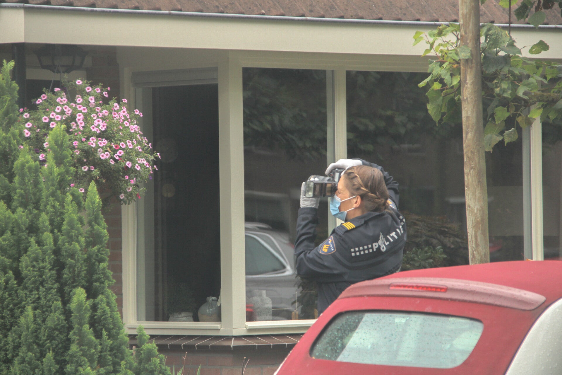 De forensische opsporing kwam ter plaatse en heeft geruime tijd onderzoek verricht in en rond de woning. Er werden onder andere foto's gemaakt, zowel binnen als in de tuin.