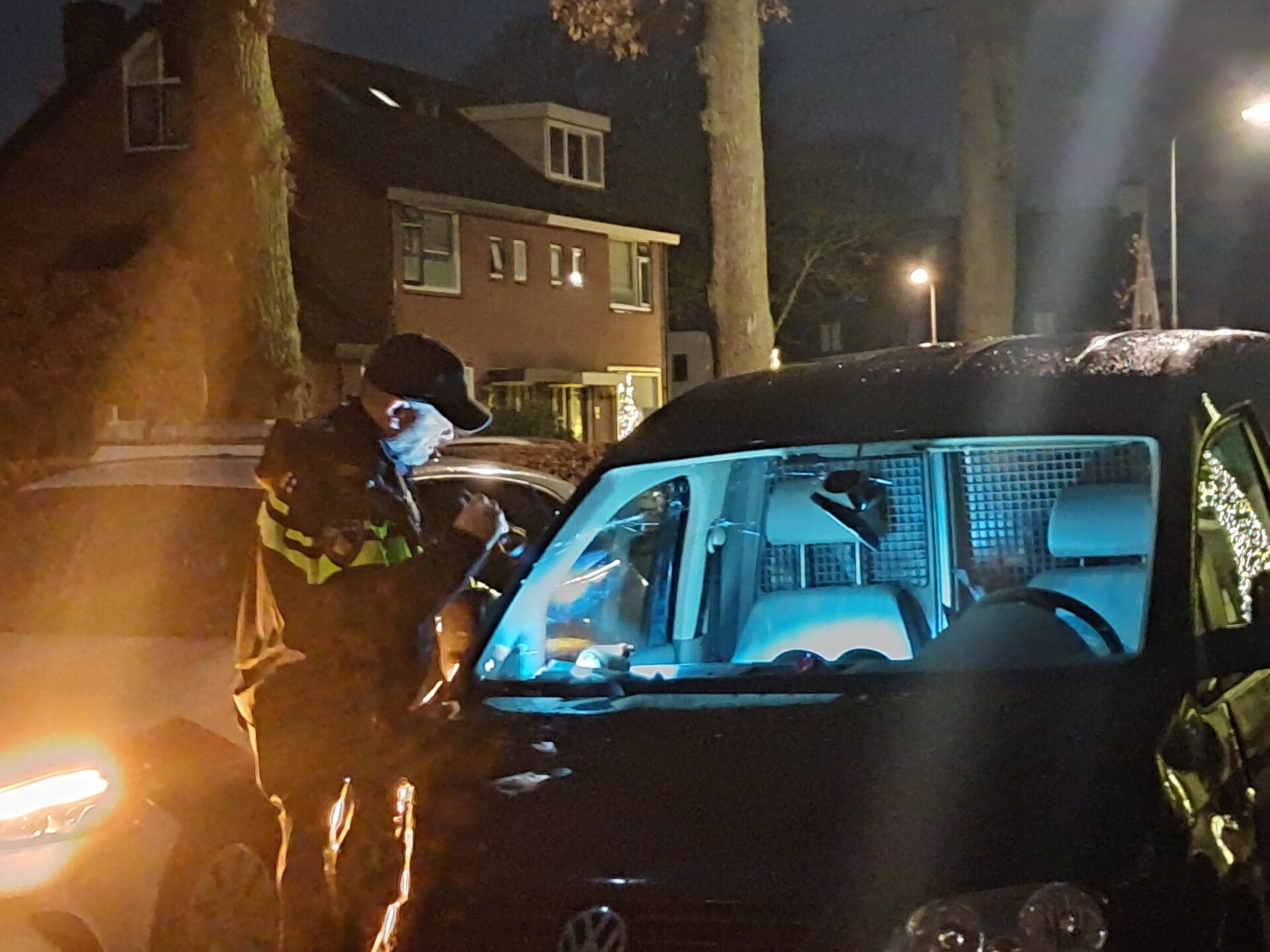 Volgens omstanders vroeg de man daarna aan buurtbewoners om een bezem om de rommel op te ruimen. Niet veel later gingen hij en zijn bijrijder lopend ervandoor. Buurtbewoners roken een sterke alcohollucht, waarop de politie in de omgeving naar hen zocht.