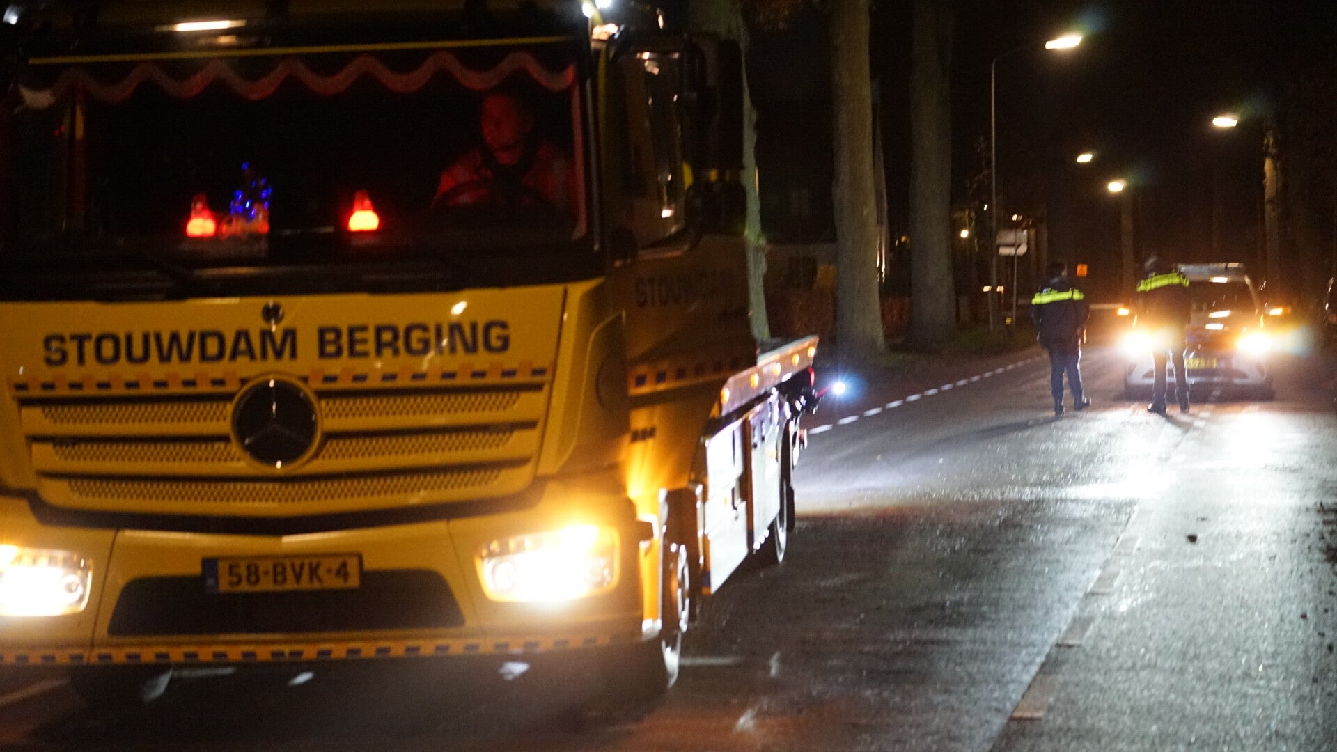 Een bergingsbedrijf heeft de auto afgevoerd naar Stouwdam in Oldebroek. Het voertuig is total loss: het linker voorwiel stond scheef, de voorruit had meerdere barsten en de hele voorkant was zwaar beschadigd. Ook de boom liep flinke schade op en op de weg lag brandstof.