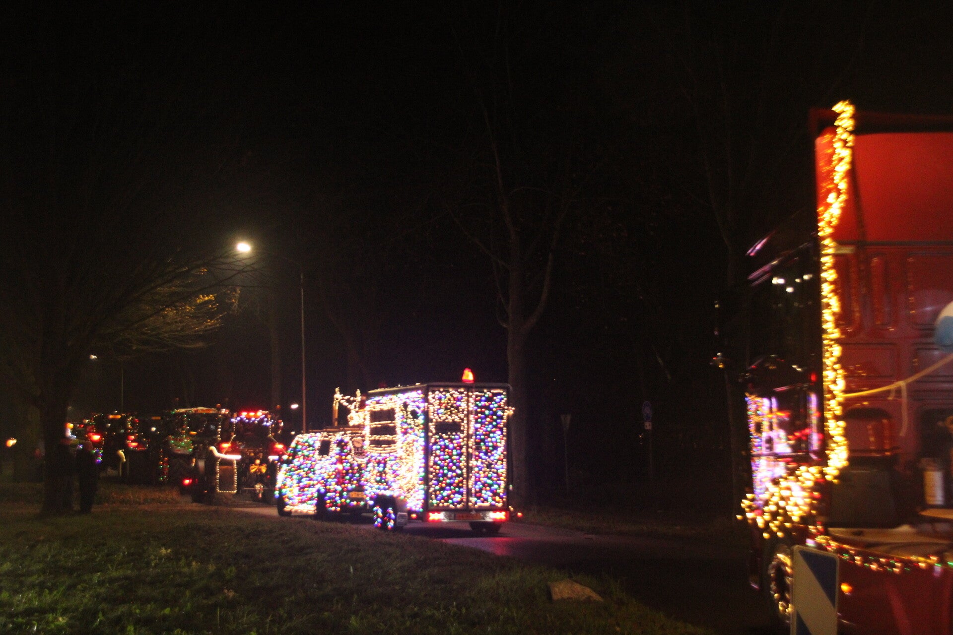 Onder de deelnemers bevonden zich onder andere de brandweer, een Amerikaanse politieauto, diverse fraai verlichte vrachtwagens en trekkers. Langs de route stonden vele toeschouwers die genoten van de vrolijke sfeer, lichtshows en luid getoeter.
