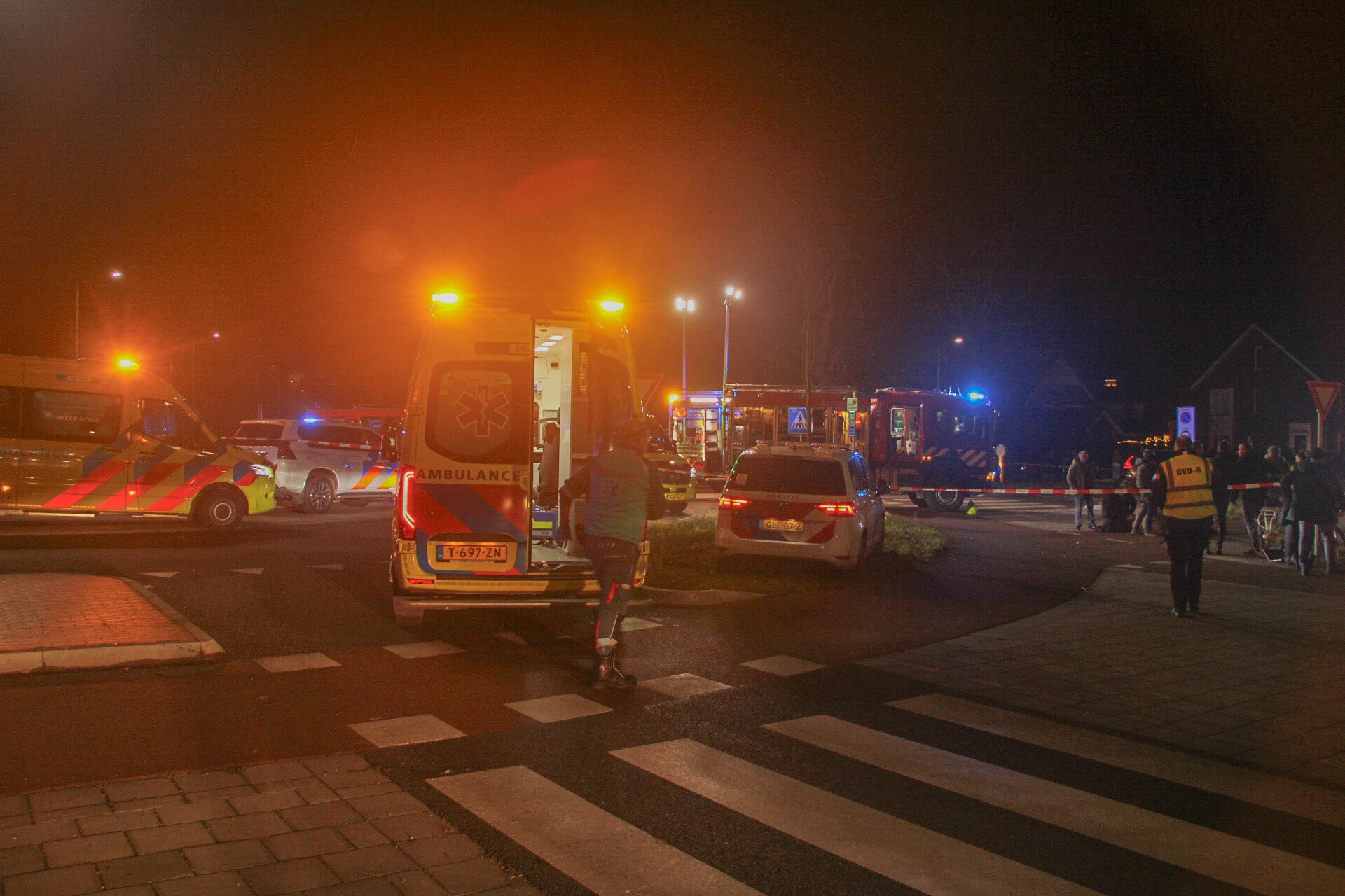 Ter plaatse zijn meerdere ambulances, politie-eenheden en brandweervoertuigen ingezet. Ook twee traumahelikopters zijn opgeroepen. De kruising van de Elburgerweg met de Oenenburgweg is volledig afgesloten. Om het zicht op de plaats van het incident te beperken is een scherm geplaatst.