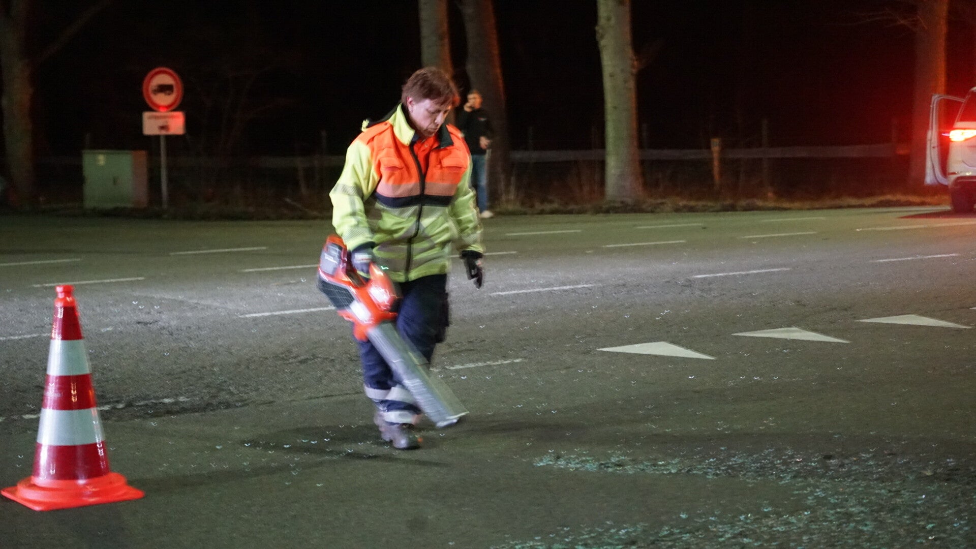 Een medewerkster van Provincie Gelderland ruimde glasscherven en brokstukken van het wegdek. De politie leidde het verkeer tijdelijk om, wat zorgde voor lichte verkeershinder.